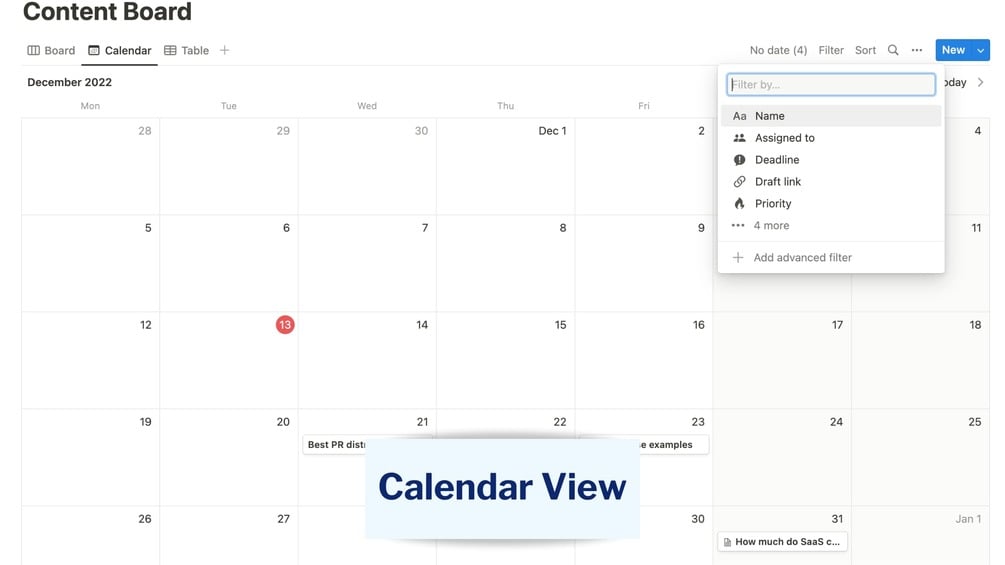 4. Calendar view helps track deadlines for articles.